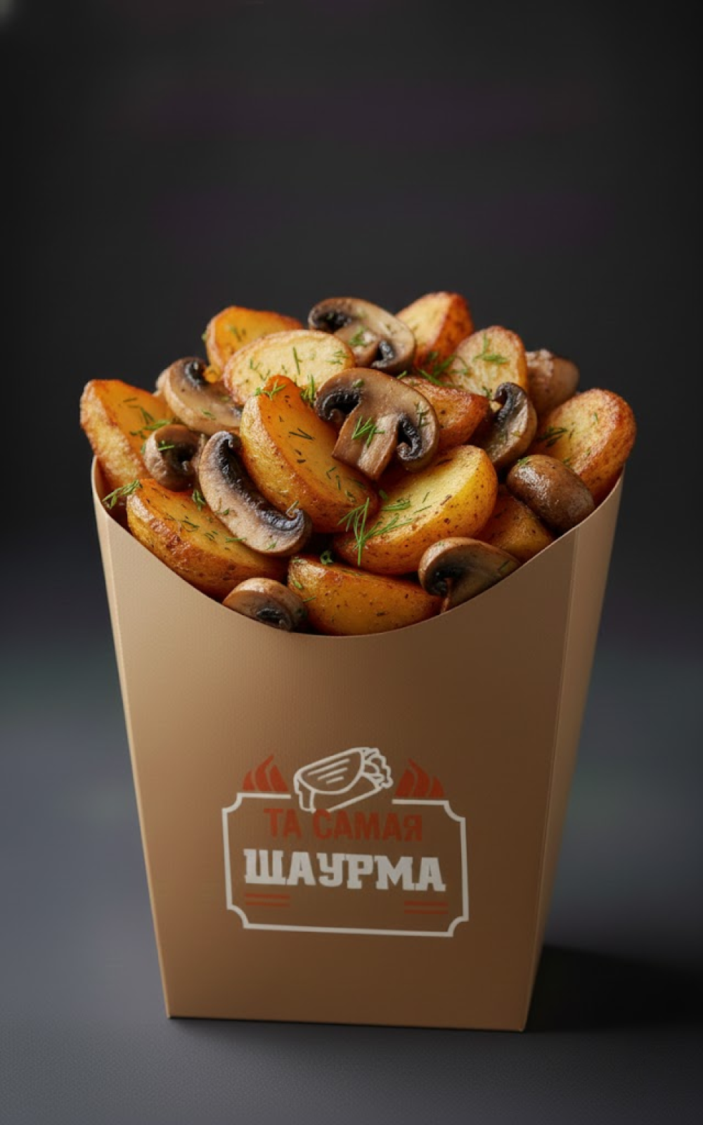 Золотистые ломтики картофеля с ароматными лесными грибами и луком.