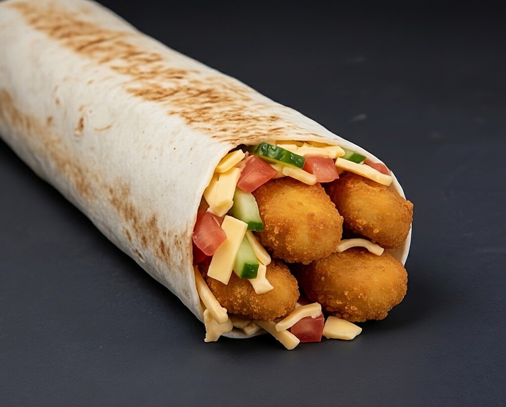 Наггетсы, томат, огурец, сыр плавленный, соус фирменный.