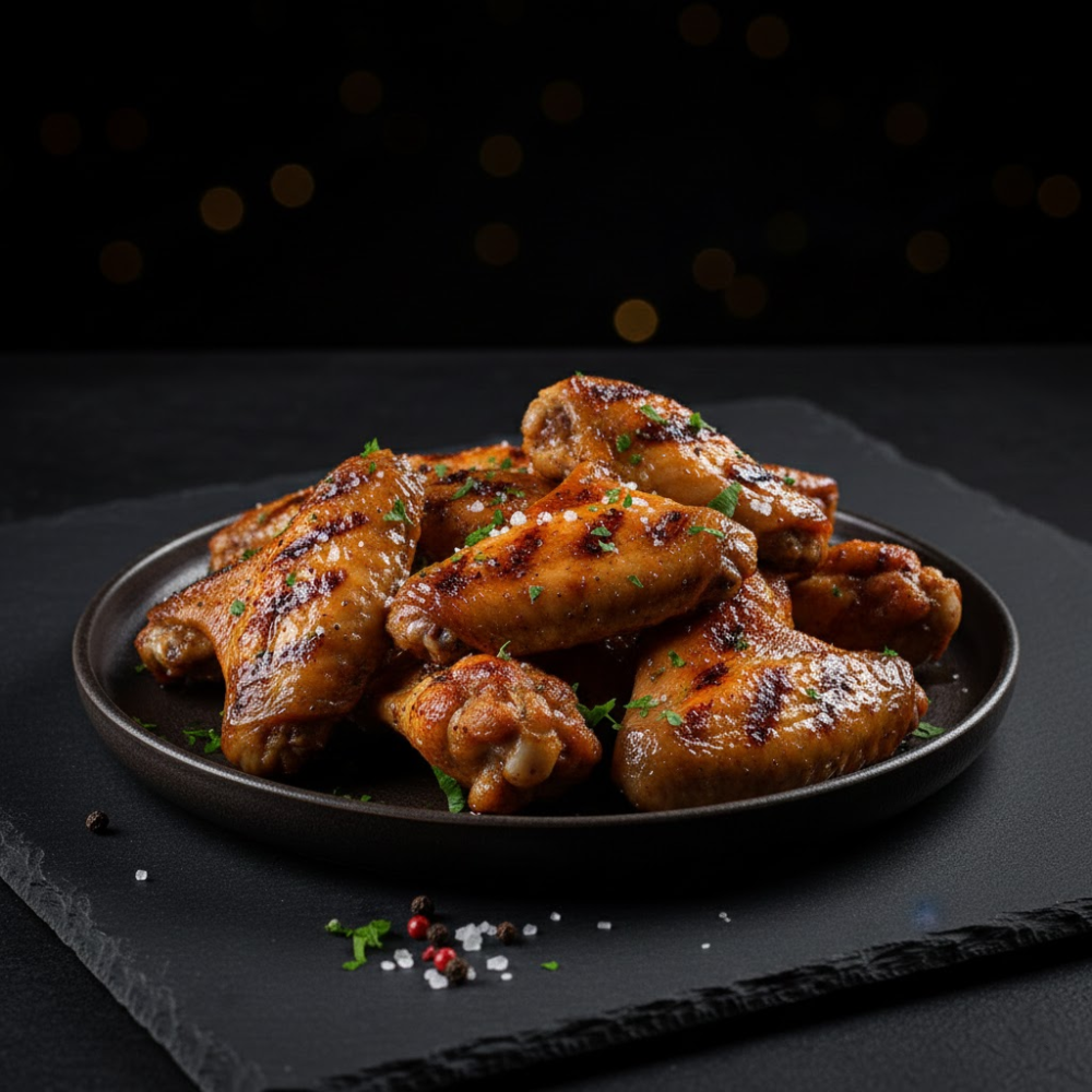 Хрустящие крылышки с пикантным ароматом барбекю, запеченные до идеального хруста снаружи и мягкости внутри.